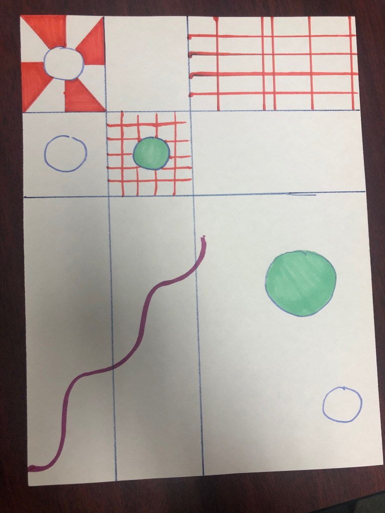 The colors that are used in this piece automatically draws the audience’s attention. Dubois used a very bright background, which naturally draws the viewer’s attention to his piece.